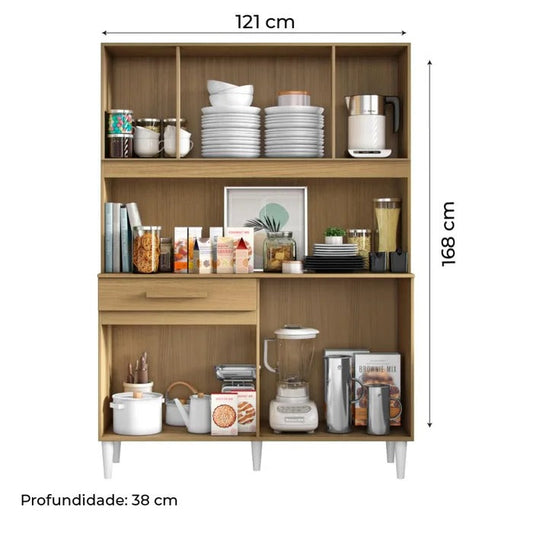 Armário de Cozinha Compacta 4 Portas 1 Gaveta 121 cm Marina – Atacama/Off White